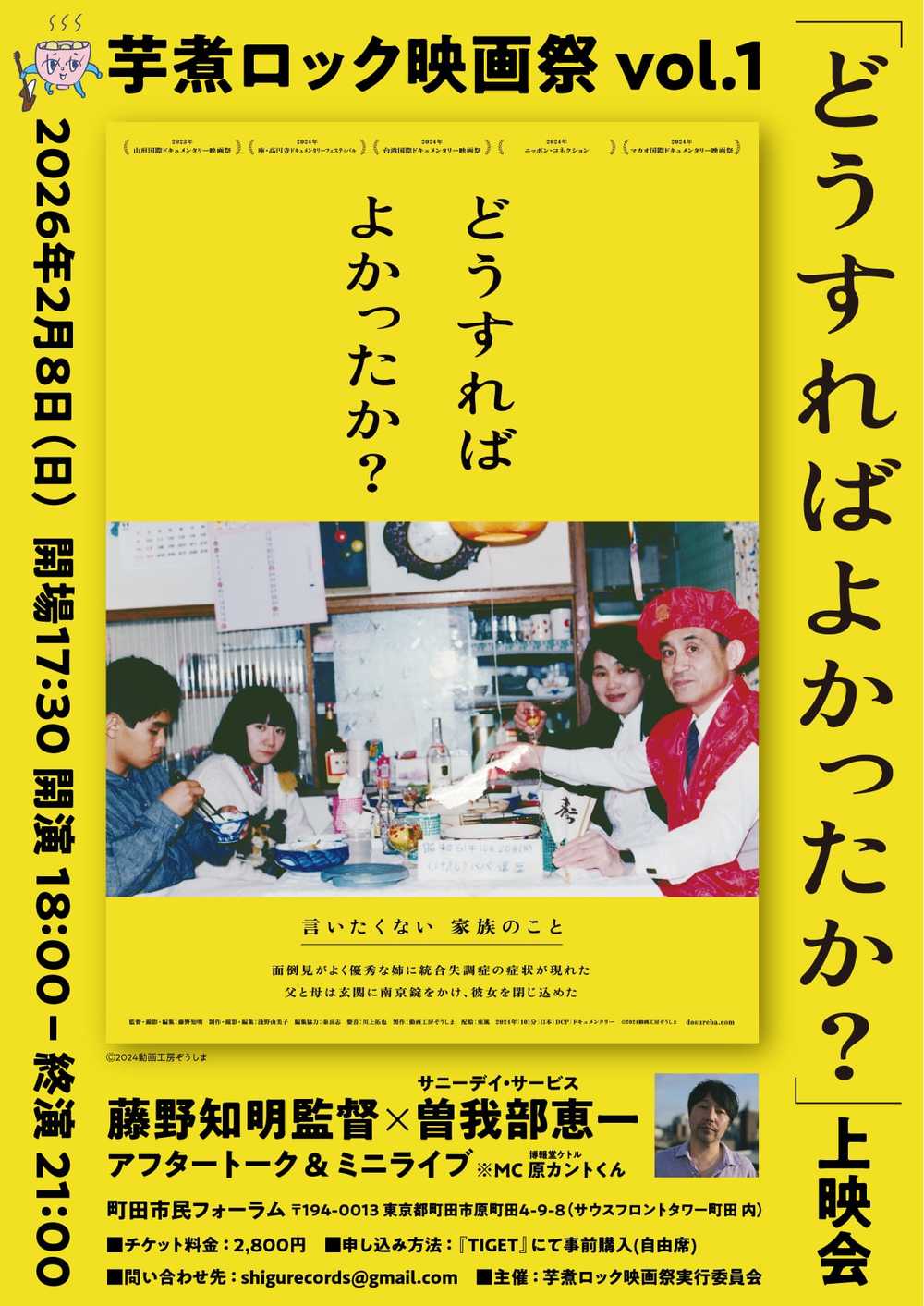 2/8(日) 町田市民フォーラムにて開催<芋煮ロック映画祭 Vol.1 - ドキュメンタリー映画『どうすればよかったか?』 藤野知明監督× 曽我部恵一 アフタートーク&ミニライブ>開催決定!