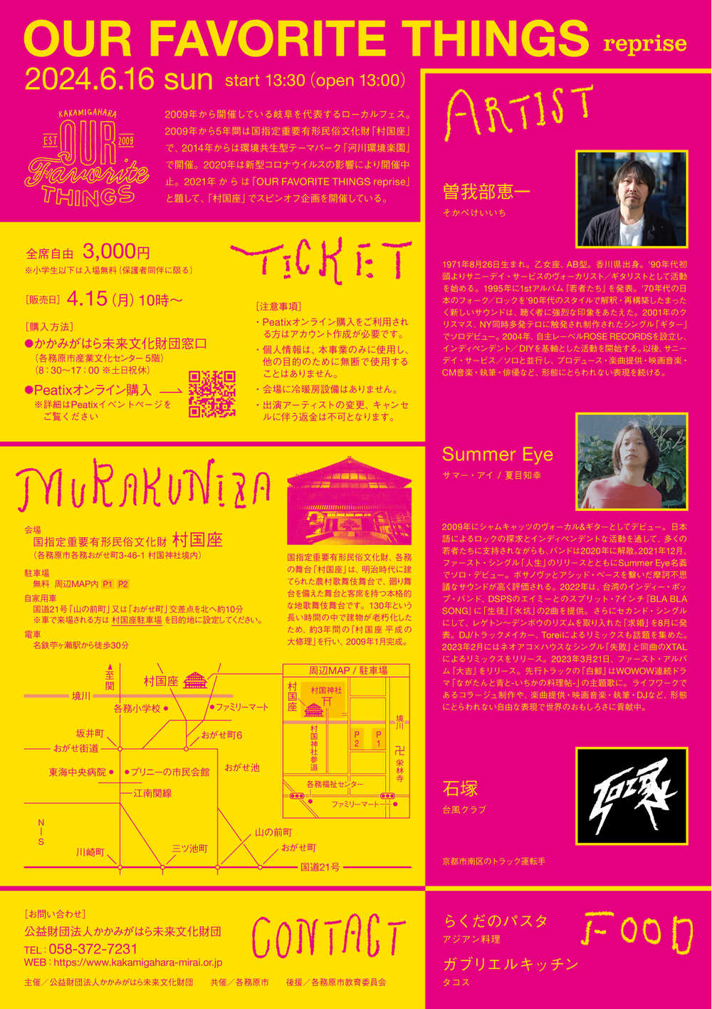 6/16(日)岐阜 国指定重要有形民俗文化財「村国座」にて開催<OUR FAVORITE THINGS reprise 2024>に曽我部恵一出演決定!